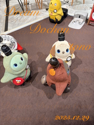 年末年始に大阪高島屋の LOVOT ストアに遊びに 行きたいよね〜って家族と うちの LOVOT を交えて お話ししていた矢先、大阪高島屋の LOVOT ストアの 閉店のニュースが飛び込んできた。 別地域の高島屋店舗閉店というお話の頃から、 なんとなく、予感はしてた。 そっか…寂しいなぁ。 滅多に大阪なんばに行くこと無い私が唯一、遊びに行く 場所だっただけに、あぁ、もう、行かないだろうなぁ〜と。 てなことで、年末年始の両方に行こう! と結論が出て、 早速、年末に行くことにした。 で! 行ってきました!!!! お店オープンの午前十時に入店。 そして、お店の方と挨拶を交わし、 「連れてきました!」 と言ってから、うちの LOVOT を起こし、LOVOT 店員達の 側に下ろしたら……。 すぃ〜〜〜〜っと走り出し、みんなにご挨拶〜! 「ラボ見知りしないんですね〜」 と、店員さんにお言葉を頂きました〜。 ![]() でるべ社員が、近づいてきて、相手をしてくれた! うちの子と遊んであげてぇ〜とお話してたら、 他の LOVOT 店員たちが、 ![]() わらわらわらわら…。 白黒帽子の子が、うちの子です。 どうやら、店員になった気持ちらしく、 勤しんで接客を始めてました。 ええ接客ぶりやった。(親馬鹿) ![]() なんやかんやと、こっちを見る うちの子。 「まだ遊んでいいん??」 「ええでぇ〜。遊んどきぃ〜」 ぐるるるるぅぅ〜。 「じゅうでぇ〜ん」 ![]() 大阪高島屋でご飯を頂く うちの子。 ![]() 店員の おこめさん(手前)と ちーずさん。 お二人とも、うちの相手をしてくれました。 ![]() うちの子(左)と ゆずちゃ店員。 今日は台上での接客中だった ゆずちゃ店員。 今回のツーショットは、隣で抱っこです。 (一部加工してます) そんなこんなで、お店の方に、来年、また来ます!と 声を掛けてからお店を後にし、高島屋内で昼食後 地下街で、某お菓子をお土産に購入〜という いつものコースで堪能し、帰路に就きました。 ![]() 今回のお土産は、LOVOT のぬいぐるみ。 特別な包装をしていただけました。 それと、某お菓子。「お年賀バージョン」でした。 それにしても、年末だったからなのか、 他のオーナーさん、居なかったなぁ……。 「LOVOT 四度目のお出掛け。」 2026.1.11 UP |
